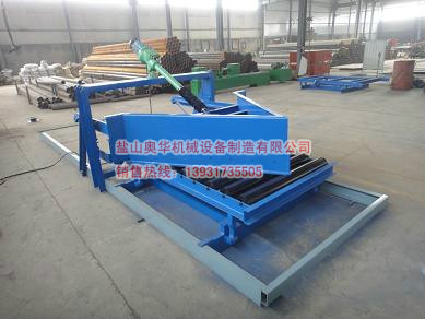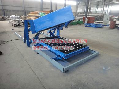 2, putting out, put down the discharge plow head, unloading plow head plow handle at the same time pull up the roller frame. The height of the roller reaches the theoretical height of the conveyor, the belt and the angle adjusting roller are flattened, the discharging plow head contacts with the adhesive tape, and the conveyor completes the discharging.